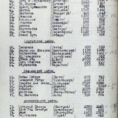 По данным Ханты-Мансийского окрисполкома в 1944 году рыбаки-колхозники вместе с семьями составляли 14 тыс. человек, работники рыбной промышленности - 22 тыс. человек, всего население округа составляло 90 тыс. человек.